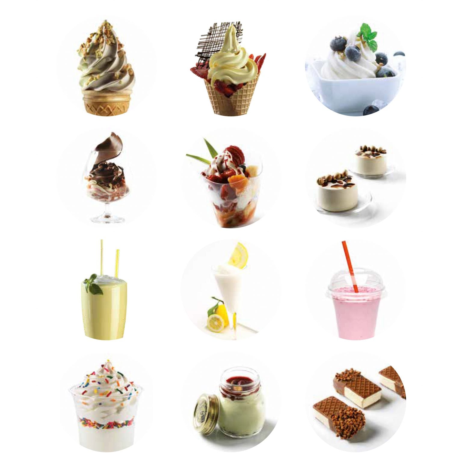 Lämpökäsittelyyn tarkoitettu pystysuora kaksimakuinen kone, kaksi kompressoria, painovoimainen, In.Co.Di.S.-teknologialla, pehmisjäätelön, pikajäätelön ja jääjogurtin valmistukseen.